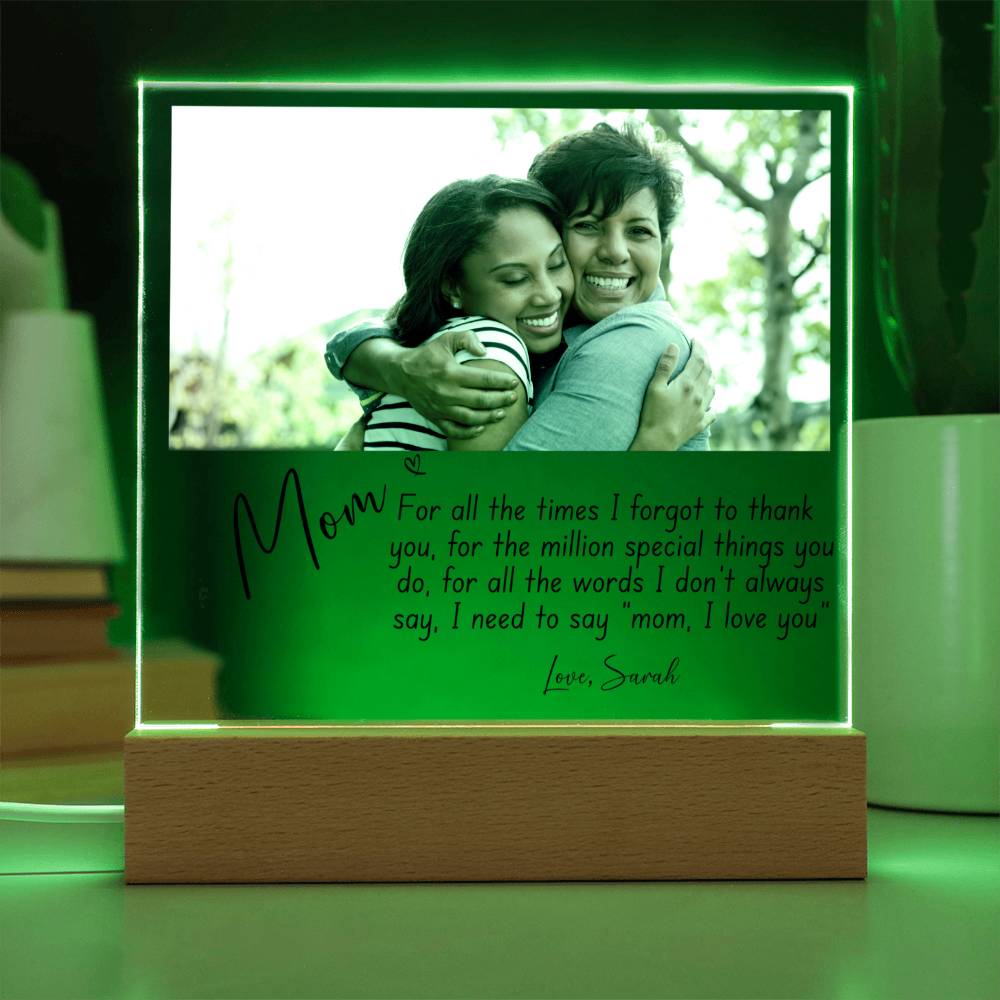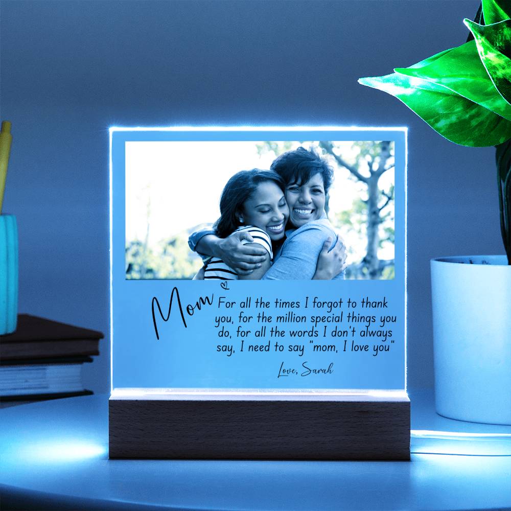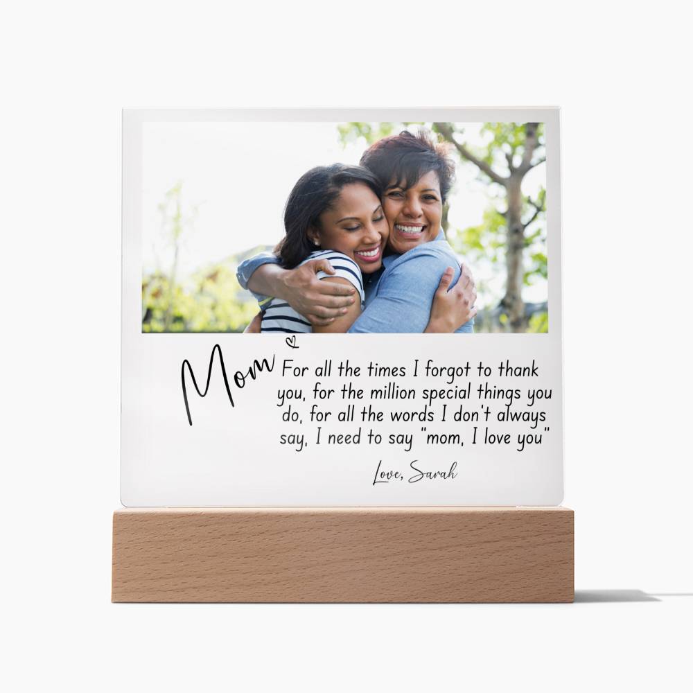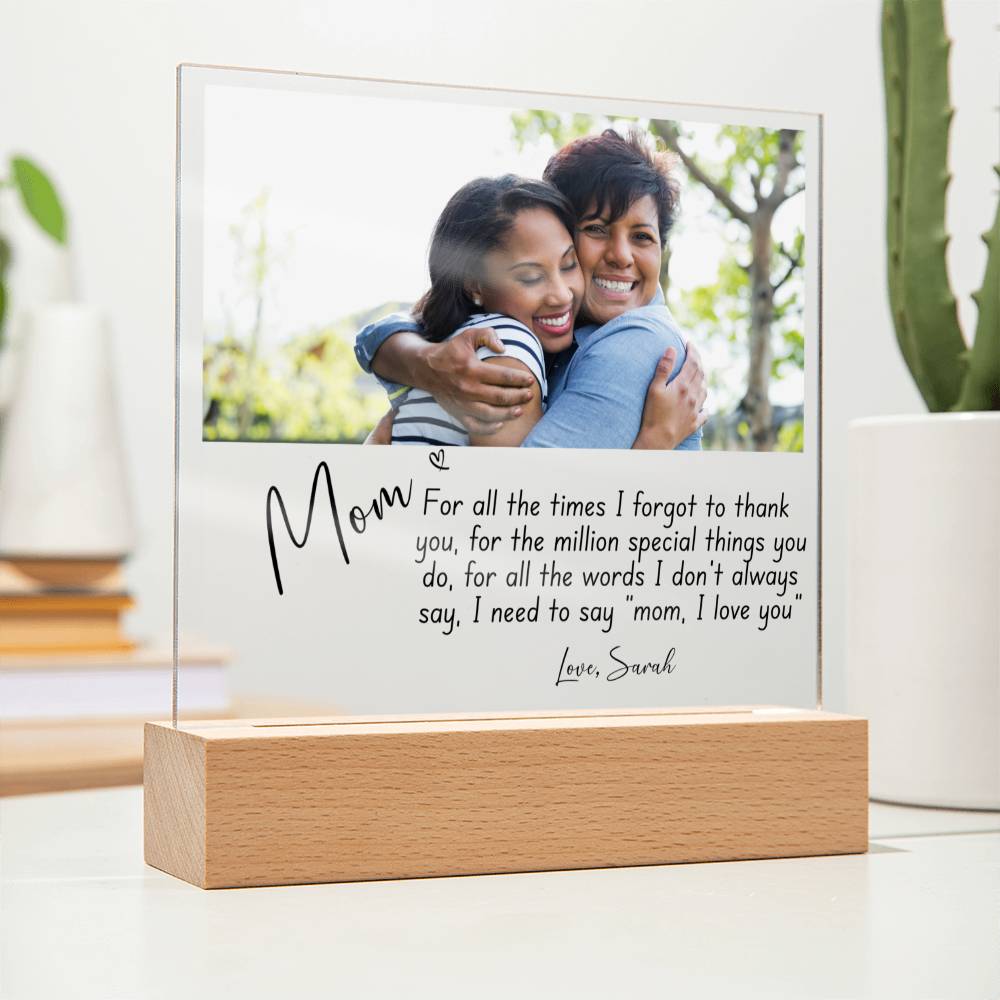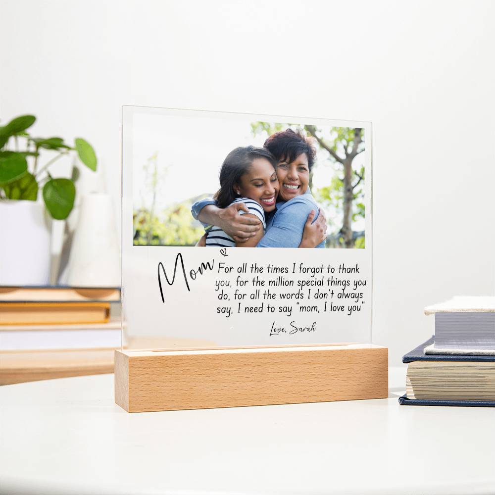 Whether it's for Mother's day, Christmas or a birthday, this heartfelt gift will serve as a constant reminder of your love and appreciation. Commemorate special moments with this personalized acrylic plaque that she'll cherish forever. Your mom's heart will surely swell with pride as she proudly displays this personalized masterpiece in her home!